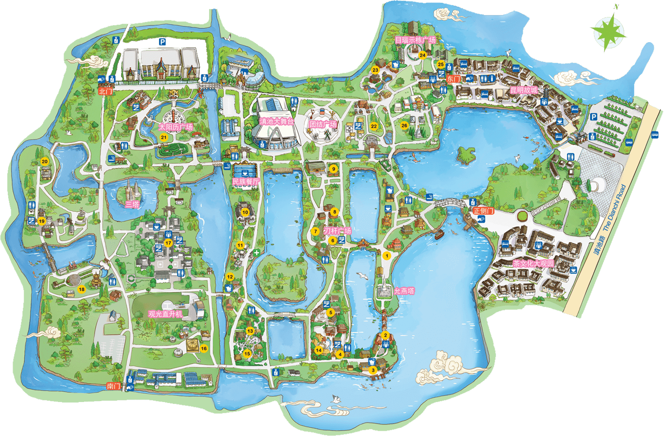 哈尼族是我國西南邊疆歷史悠久的農耕民族,人口約130余萬,主要居住在云南省紅河、元江、瀾滄江流域的無量山區和哀牢山區。哈尼寨占地15畝,展現了最具有代表性的蘑菇房和愛尼母子房,日月廣場;有表現哈尼族關于魚生萬物傳說的大型浮雕,有表現哈尼族遷徙傳說的圖騰柱;有體現生產生活的磨房、龍巴門、秋千場、梯田;寨神樹和祭石表現了哈尼族“萬物有靈、多神崇拜”的宗教信仰。哈尼傳統的節日有“年首扎勒特”、“苦扎扎”...